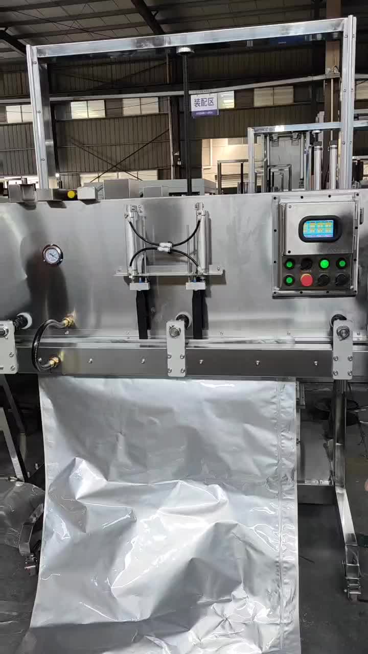 我们新推出的吨袋内抽真空包装机,客户现场验收通过了,相比于外抽抽气嘴插入式的,不会接触到物料,真空度更高,粉末不会被抽走,很适合超细粉,含气量大的物料,解决了超细粉抽真空难,真空静置后不紧实,真空热合后粉末称重重量不准等问题。 一、技术参数序号类型具体参数1设备型号DZ-800NZA2整机尺寸长度4580mm,宽度1700mm,高度4550mm3重量约4.5吨4电源380V-50HZ5功率6.5K